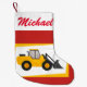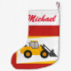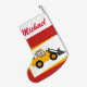 Personalised Modern Yellow Loader Tractor on Red Small Christmas Stocking