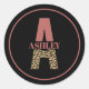 Personalised Monogram A Pink Leopard print Classic Round Sticker