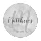 featuring family name in grey modern script font style and monogram in light grey modern script font style as background