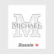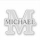 features personalised name in grey and monogram in light grey as background, in classic serif font style.