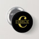 Personalised Monogram And Name Black And Gold 6 Cm Round Badge