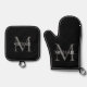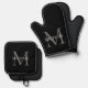 Personalised Monogram and Name Black Oven Mitt & Pot Holder Set