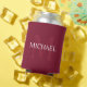 Personalised Monogram and Name Burgundy Red Can Cooler