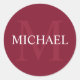 Personalised Monogram and Name Burgundy Red Classic Round Sticker