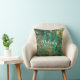 A Personalised Monogram and Name pillow featuring personalised name in white modern script font style and monogram in green modern script font style on a green and gold background. Perfect as a holiday gift, family reunion favours, housewarming gift, thank you gift for bridesmaids, or any of your home decor needs.