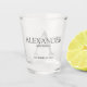 Elevate your wedding experience with personalised groomsmen shot glasses, adding a personal touch that resonates. These custom shot glasses showcase the groomsman's name and title in sophisticated grey tones, set against a soft light grey monogram background, all crafted in a classic serif font style. Noteworthy for best man gifts, father of the bride tokens, ring bearer mementos, and more. Discover the perfect blend of customisation and celebration.