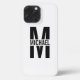 featuring personalised monogram in black bold modern sans serif font style with box of name in the middle of monogram.