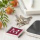 featuring personalised white monogram in classic serif font style with box of name in the middle of monogram on burgundy red background.