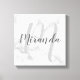 featuring name in grey modern script font style and monogram in light grey modern script font style as background on white marble background.