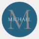 Personalised Monogram and Name Ocean Blue Classic Round Sticker