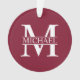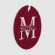 featuring personalised white monogram in classic serif font style with box of name in the middle of monogram on burgundy red background.