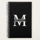 featuring personalised monogram in classic serif font style with box of name in the middle of monogram on black cover.