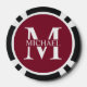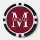 featuring personalised white monogram in classic serif font style with box of name in the middle of monogram on burgundy red background.