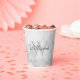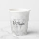 features personalised name in grey script font style and monogram in light grey serif font style as background, on white marble background.