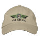 A custom hat detailed embroidered Personalised  Monogram Laurels Badge Pilot Wings baseball cap on for any aviation, geocaching, exploration enthusiast. For the air pilot you love or the one in you. Edit the text line field with a name, business, title, or coordinates. Edit the 3 letter monogram field to suit what you want; it is now set as "GPP" for General Private Pilot. You can also email us with your special request or for help with this embroidery as well.