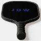 Personalised pickleball paddle. Name. Monogram. Blue and black.