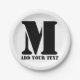 Personalised Monogram Black Custom Modern Text Paper Plate