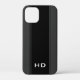 Personalised monogram black iPhone 12 mini case for men. Elegant sleek design for personalised monogram initials. Masculine / manly Birthday or Christmas gift idea for dad, father, uncle, brother, husband, grandpa etc. Monogrammed name letters. Modern typography. Stripe design.