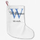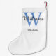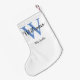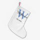 Personalised Monogram Blue Small Christmas Stocking. Add a festive touch to your holiday mantle with this double-sided personalised Monogram Blue Christmas Stocking. Personalise with your initial, last name, and first name.