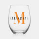 Personalised Monogram Custom Initial Name Elegant Stemless Wine Glass