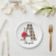 Personalised monogram editable A text red flower f Paper Plate