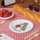 Personalised monogram editable A text red flower floral beige chequered plaid