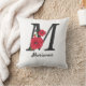 Personalised monogram editable M text red flower floral beige chequered plaid