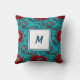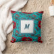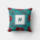 Add a touch of vibrant luxury to your home with this stunning personalised monogram throw pillow. Featuring an intricate botanical pattern of bold red flowers and ornate motifs on a deep teal background, this design perfectly blends bohemian spirit with elegant sophistication. The centre features a clean white square for your custom initial (shown with a stylish Blue M), making it a truly one-of-a-kind piece.