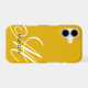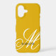 Personalised monogram elegant mustard yellow iPhone 17 case . Elegant script typography in light grey colour. Create your own personalised smartphone cover with luxurious design. Fancy swirly lettering that can be enlarged or made smaller and placed to your liking. You can also change all the colours of the letters and background. Classy monogrammed design for personal use, wedding couple or business. Add your own glamourous logo optionally. Chic blank template with pretty soft tone background image. Beautiful template with luxury style font. Also available for Samsung Galaxy S phones and other popular brands. Decorative phone accessories that can be completely customised with your own print. Change quantity for the best offer sale price.