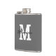 Personalised monogram name initial drink flask with elegant script text. Customisable grey and white colour. Cool wedding / bachelor party gift idea for bride and groom / groomsmen and bridesmaids. Personalise it with a name and monogram initials. Alcohol / Drinking present. Custom background colour.