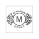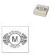 This ornate stamp features an elegant circular frame around a custom monogram initial. Names can be added above and below the monogram.