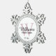 Personalised Monogram Newlywed Blush Pink Snowflake Pewter Christmas Ornament. The dotted border is reminiscent of milgrain, which is a jewellery-detailing technique often used for engagement and wedding rings.