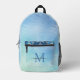 Personalise the first letter of your name with a Modern elegant Glam Bright Blue Agate Glitter Drips, designed in a beautiful handwritten Blue script style and gradient Blue background printed backpack with optional personalisation. and space to add your kid's name. The perfect gift for girls who love Agate Glitter , perfect for your child to take to school or preschool, sports or work. l! Customise the text field for a great bag for back-to-school
