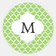 Personalised Monogram Quatrefoil green and White Classic Round Sticker