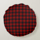 Personalised Monogram Red and Black Buffalo Plaid Round Cushion