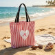 Personalised monogram red white stripes shopping tote bag