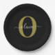 Personalised Monogram Script Name Black White Gold Paper Plate