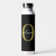 Personalised Monogram Script Name Black White Gold Water Bottle