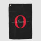 Personalised Monogram Script Name Black White Red Golf Towel