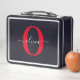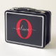 Personalised Monogram Script Name Black White Red Metal Lunch Box