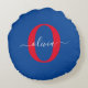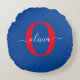 Personalised Monogram Script Name Blue White Red Round Cushion