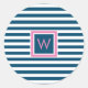 Personalised Monogram Slate Blue and White Striped Classic Round Sticker