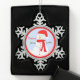 This pretty Christmas snowflake ornament has a snowman in the centre. The snowman is wearing a red scarf and a cute Santa hat. On the side of the snowman, is a place for you to customise your special name. Copyright ornamentsbyhenis