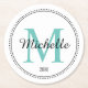 Personalised Monogram Teal Round Paper Coaster