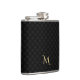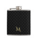 Custom, personalised, cool modern elegant black chequered chequered chequered pattern, faux gold monogram initials vinyl wrapped steel hip pocket flask, to keep handy and close your favourite alcohol, liquor, whiskey, rum, vodka, wine. Simply type in your initial / monogram, to customise. Makes a great custom, personalised gift for birthday, wedding, anniversary, fathers day, holidays, christmas, and more, for groom, groomsmen, dad, brother, husband, boyfriend, grandpa, ...the special men in your life.