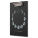 This sleek and mystical clipboard design features a full lunar cycle arranged in a perfect circle on a deep black background. With a customisable name below, it’s ideal for astrology lovers, stargazers, or anyone inspired by the moon’s phases. Both functional and artistic, this celestial-themed clipboard adds a cosmic vibe to offices, classrooms, or creative spaces.