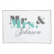 Personalised mr and mrs pillowcase for newly weds. Add your own custom name. Cute pillow case sleeve for bedroom with vintage typography initial letter and stylish script text. Classy home decor for newly weds couple, husband and wife, mr. and mrs. , newlyweds, honeymooners, bride and groom, childrens room. Trendy sleep design in customisable colours. Luxury style wedding favour gift idea. Funny bed decoration for him and her. Cute wedding, bridal shower, engagement, anniversary gift idea for men and women living together. Marriage humour. Matching set. Stylish typography design. Grey and turquoise blue. Unique favour gift.