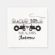 This black and white Mr. & Mrs. napkin design features two silhouette tractors in love. They are set against a charming line drawing country farm. It can be personalised with a surname or any text that you wish to add.