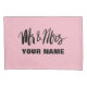Personalised mr and mrs pillowcase for newly weds couple. Add your own custom name. Cute pillow case sleeve for bedroom with hand lettered brush script typography letters. Classy home decor for newly weds couple, husband and wife, mr. and mrs. , newlyweds, honeymooners, bride and groom, childrens room. Trendy sleep design in customisable colours. Fun custom wedding favour gift idea. Funny bed decoration for him and her. Trendy wedding, bridal shower, engagement, anniversary gift idea for men and women living together. Marriage humour. Matching set. Stylish typography design. Pink and black handwriting. Unique favour gift.