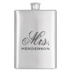 Elegant chic script Mrs. flask, personalised with the bride's new last name. Click Customise It to customise text font and colours to create your own unique one of a kind design. A great personalised wedding gift!